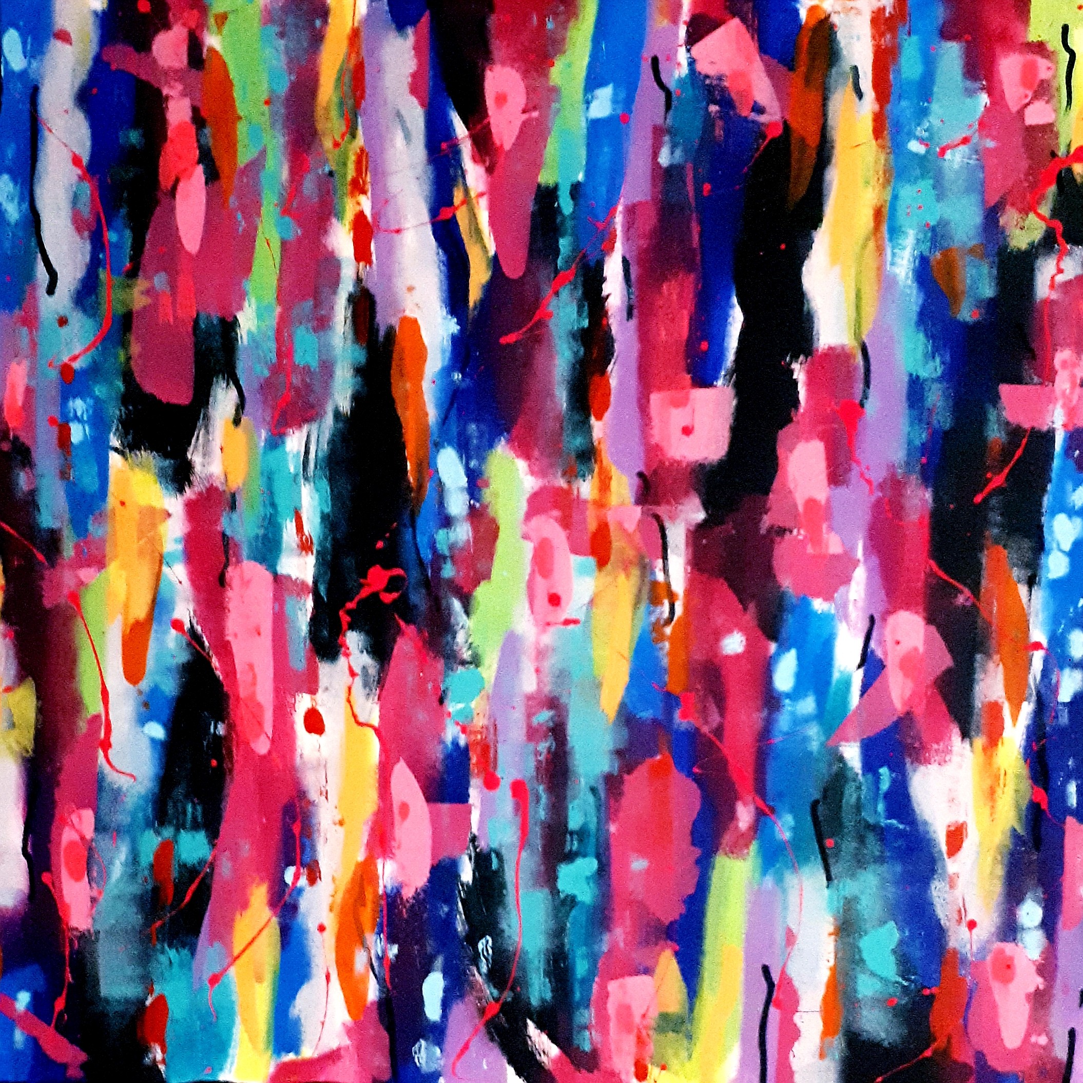 Les couleurs se superposent, créant des effets de profondeur et de dynamisme. Oeuvre abstraite unique et expressive.